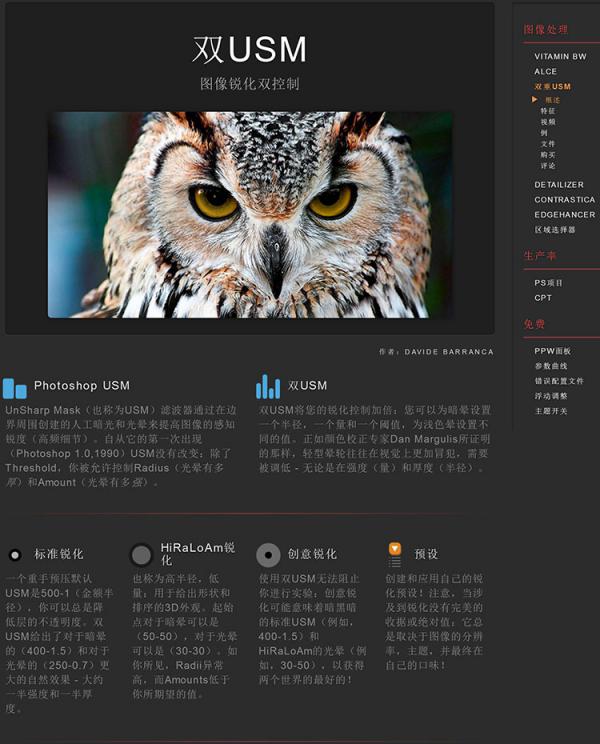 Double USM将您的锐化控制加倍:您可以为暗部色晕设置一个半径,一个数值和一个阈值,为亮部色晕设置不同的值。正如颜色校正专家Dan Margulis所证明的那样,亮部色晕往往在视觉上更加令人厌恶,需要被调低 – 无论是在强度(量)和厚度(半径)。