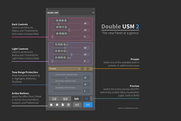 双向光晕锐化 Double USM v2 扩展面板中文版 兼容 WIN