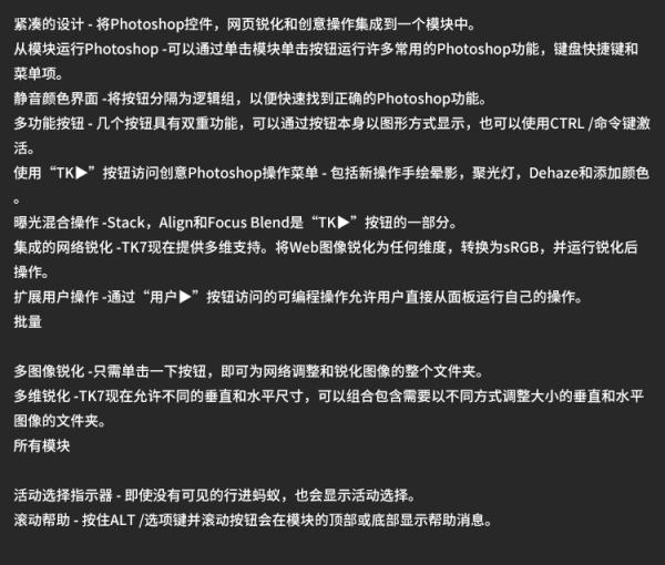 TK7面板专为Photoshop CC设计,可充分利用Photoshop CC可容纳的HTML5架构。以下是每个模块的一些功能。