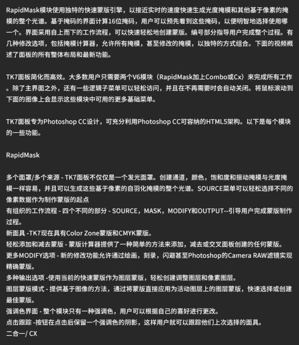 支持最新于Photoshop CC+的TK7面板+TK6中文教程+TK7新功能介绍英文教程(无字幕)