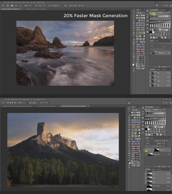 RapidMask模块使用独特的快速蒙版引擎,以接近实时的速度快速生成光度掩模和其他基于像素的掩模的整个光谱。基于掩码的界面计算16位掩码,用户可以预先看到这些掩码,以便明智地选择使用哪一个。界面采用自上而下的工作流程,可以快速轻松地创建蒙版。编号部分指导用户完成整个过程。有几种修改选项,包括掩模计算器,允许所有掩模,甚至修改的掩模,以独特的方式组合。下面的视频概述了面板的所有整体布局和最新功能。