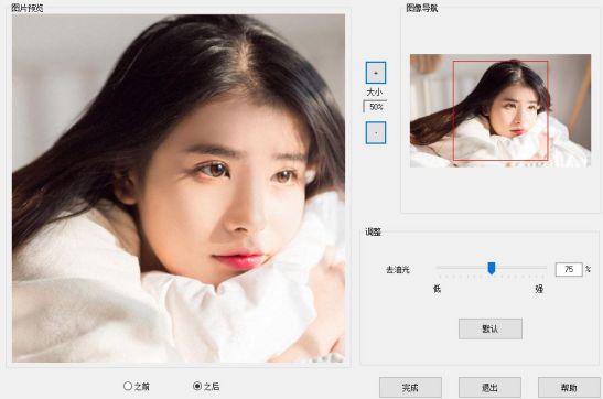 通过这款去油光滤镜一键消除皮肤油光高光,速度相当快,大大提高了修片效率!