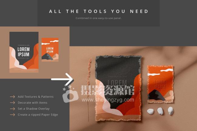 PS样机生成插件Mockup一键生成样机效果纸张褶皱阴影装饰元素插件