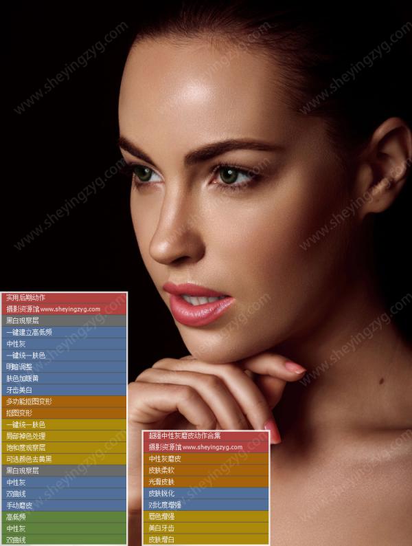 中性灰/双曲线/高低频磨皮动作组两套,手动和自动,含教程、RAW素材