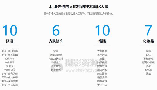 您可以进行肖像增强,例如眼圈,去除瑕疵和光泽,眼睛变亮,微笑加深,脸颊提拉,脸部苗条,眼睛扩大,鼻子增强和牙齿变白。