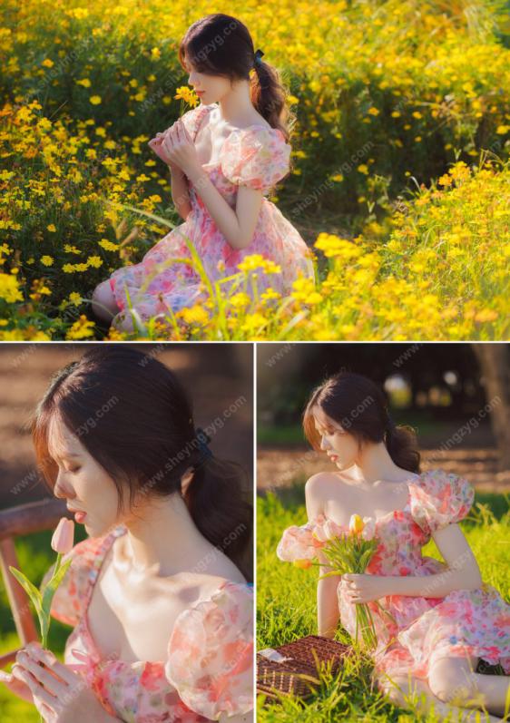 摄影RAW原图下载-花丛中的粉衣少女5P-RAW原片