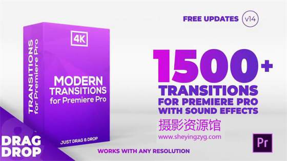 包含1500个转场效果+156个转场音效,包括推拉平移、RGB色彩分离、色彩抖动、扭曲旋转、光效、聚焦冲击等转场效果,prproj格式,直接拖拽到两个视频中间即可,使用简单