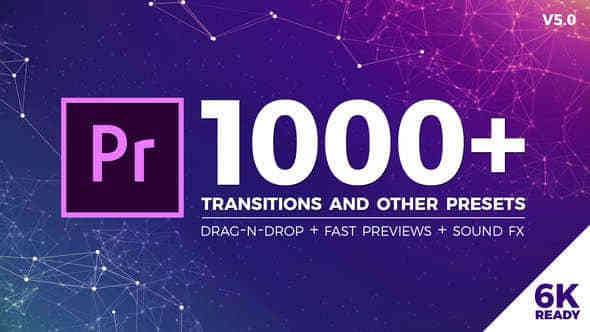 包含推拉平移、旋转扭曲、相机聚焦冲击、模糊、信号损坏、图形切割遮罩等一共1000个转场效果,prproj格式,直接拖拽到两个视频中间上面的轨道即可,使用简单,默认包含的工程分辨率(自己也可以调节适用到任意分辨率):