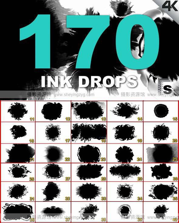 170组中国风水墨滴落晕开扩散效果动画4K分辨率视频素材