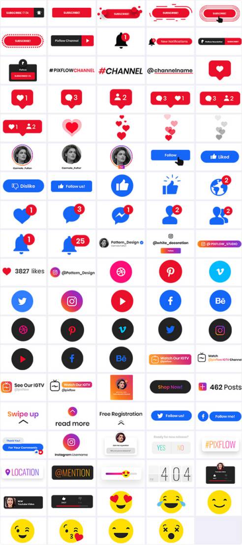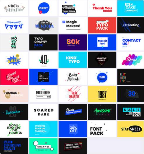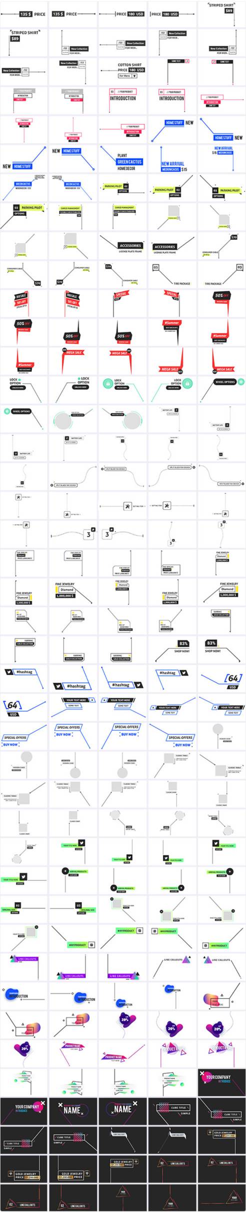 一共包含1200+动画预设,包括文字标题、图形转场、背景、文字排版、INS竖屏场景动画、数据信息图表、指示线动画、复古文字标题、社交图标动画等,支持AE CC 2019/2019 + Premiere CC 2019