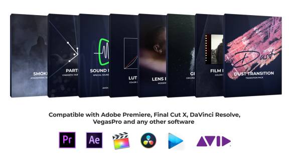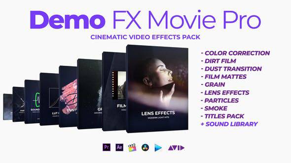 粒子光效烟雾老电影噪点划痕炫光LUTs调色音效特效视频素材包 Demo FX Movie Pro Cinematic Effects