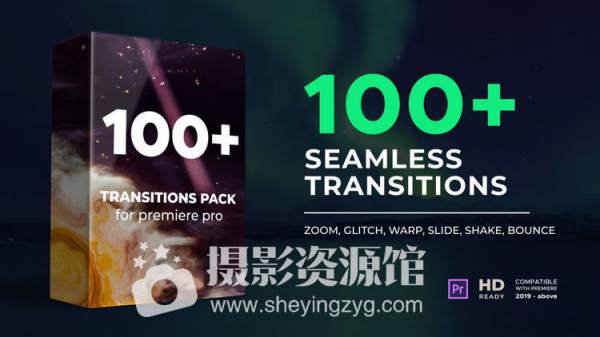 100种拉伸缩放旋转干扰抖动平移无缝视频PR转场预设
