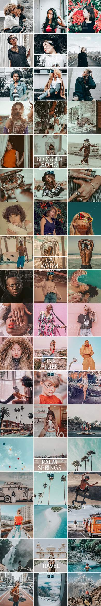 包括6个Blogger预设(Bright,Boho,LA Warm,Palm Springs,Pink Fluff和Travel预设)