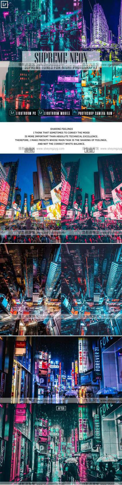 lr预设城市霓虹色彩黑金预设 赛博朋克SupremeTones Supreme Neon lightroom presets