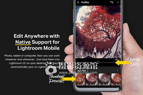 随时随地编辑,支持您的笔记本电脑、平板电脑或手机的Lightroom。本机移动预设具有不透明度支持,渲染速度极快。