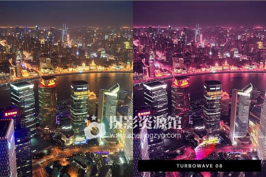 10 Turbowave预设-紫色和橙色色调的赛博朋克美学。