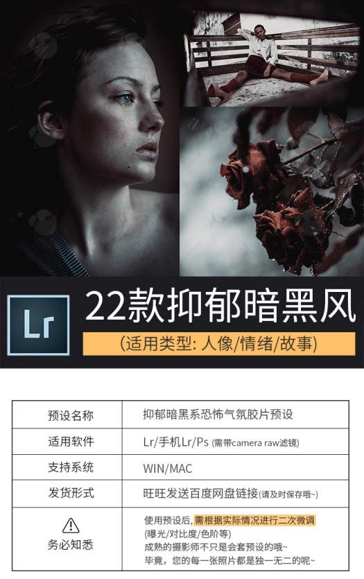 lr预设抑郁暗黑系恐怖气氛调色后期LR胶片预设