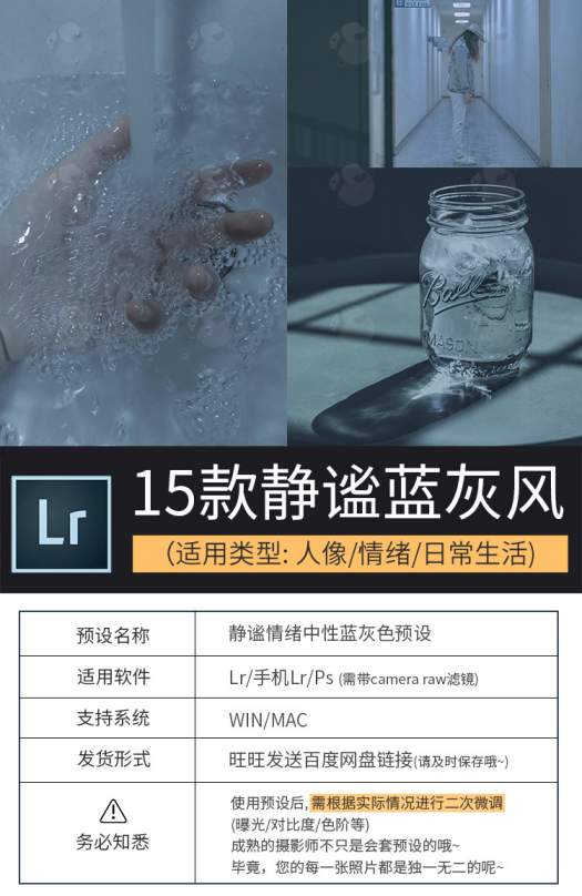 lr预设静谧蓝情绪中性灰物理光GR蓝人像PS滤镜
