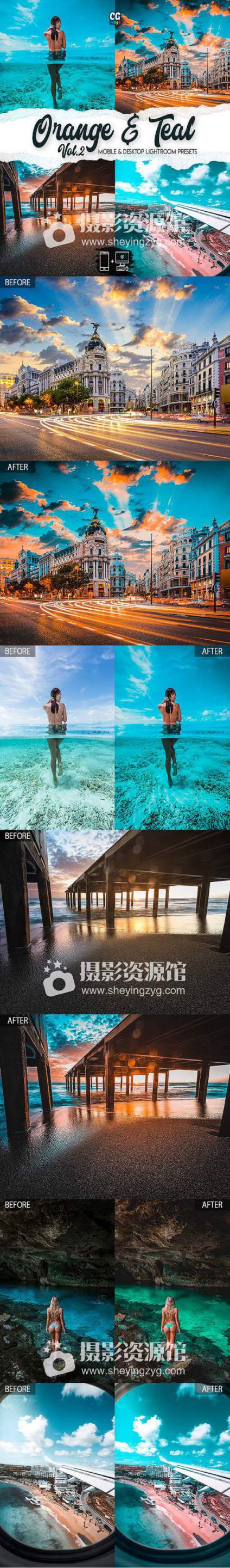 lr预设橙青色旅拍风光电影色调LR预设+手机lr预设