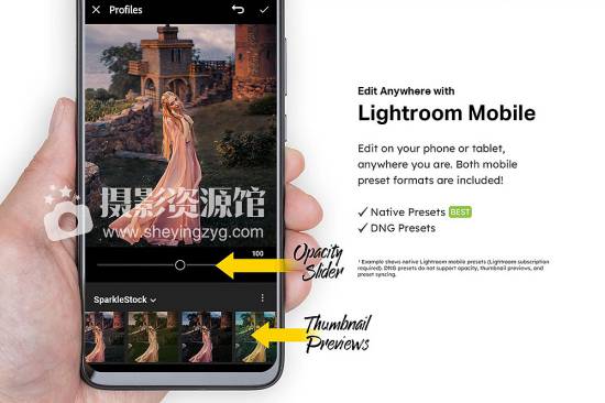 借助TRUE Lightroom移动支持,您可以在手机或平板电脑上进行编辑-随时随地。 DNG和本机移动预设都包括在内。