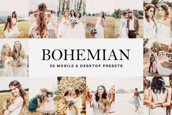 充满浪漫气息的嬉戏。这些波西米亚风格的预设为您的照片提供美丽的古铜色和明亮通风的色调。您将获得50张永恒的外观,非常适合人像和婚纱摄影。