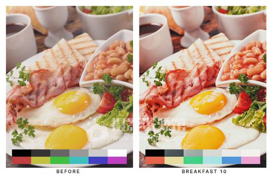 早餐(10个预设)-早餐的Lightroom预设。增强面包的对比度,使蛋黄呈温暖的黄色。