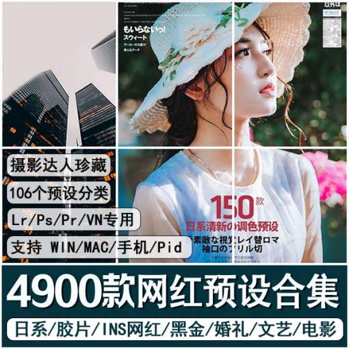 4900款网红pr调色lr预设ps滤镜达芬奇lut电影视频素材