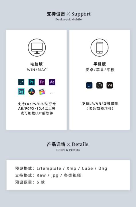 清新柔光微蓝调色预设,6款预设支持PS、LR、视频调色、手机调色,一键点亮你的美!