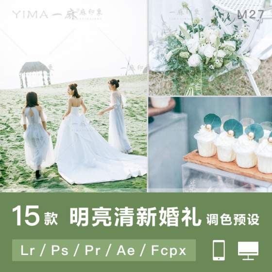 15款LR预设婚礼人像跟拍小清新唯美FCPX达芬奇PS手机APP滤镜PR调色LUT预设