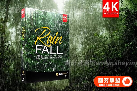 4K视频素材-133个真实下雨场景玻璃雨滴水珠滑落特效动画Rain Fall