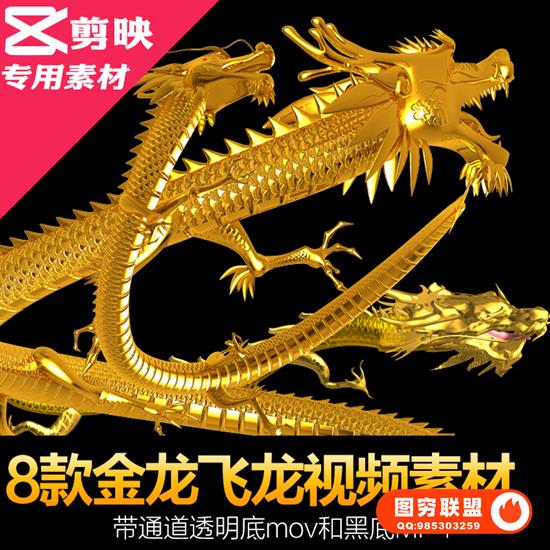 视频素材-8款AEPR剪映抖音大金龙飞龙飞翔动态视频特效素材透明底MOV带通道