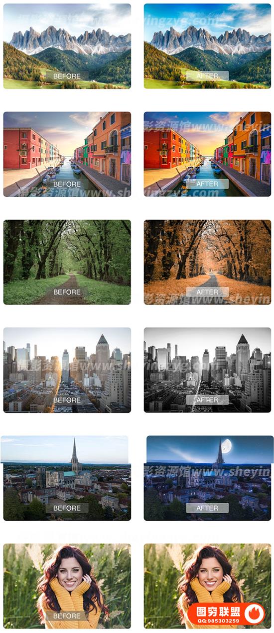 包含效果:基础、风景、黑白、肖像、戏剧、日夜、颜色、气氛、复古、天空