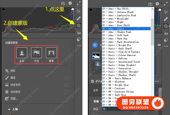 支持PS Camera Raw和Lightroom,在蒙板-预设中使用