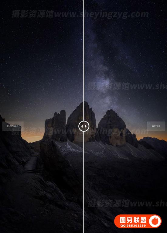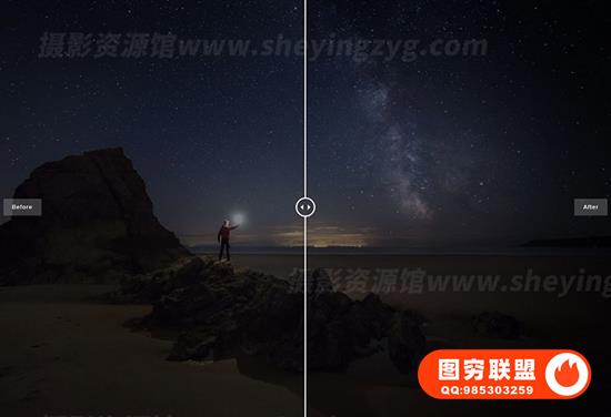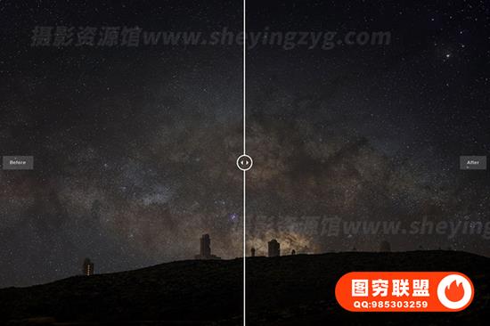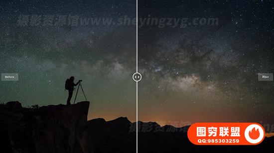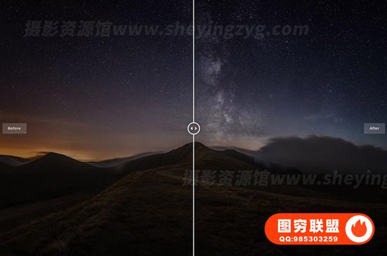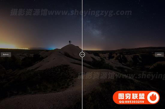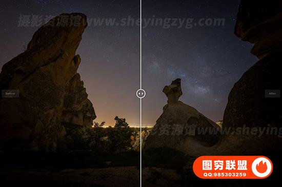 最后,使用我的本地调整预设添加最后的修饰并艺术地雕刻图像。只需使用提供的一些工具即可使天空变暗,使银河系变得流行,并为最亮的星星添加光芒。